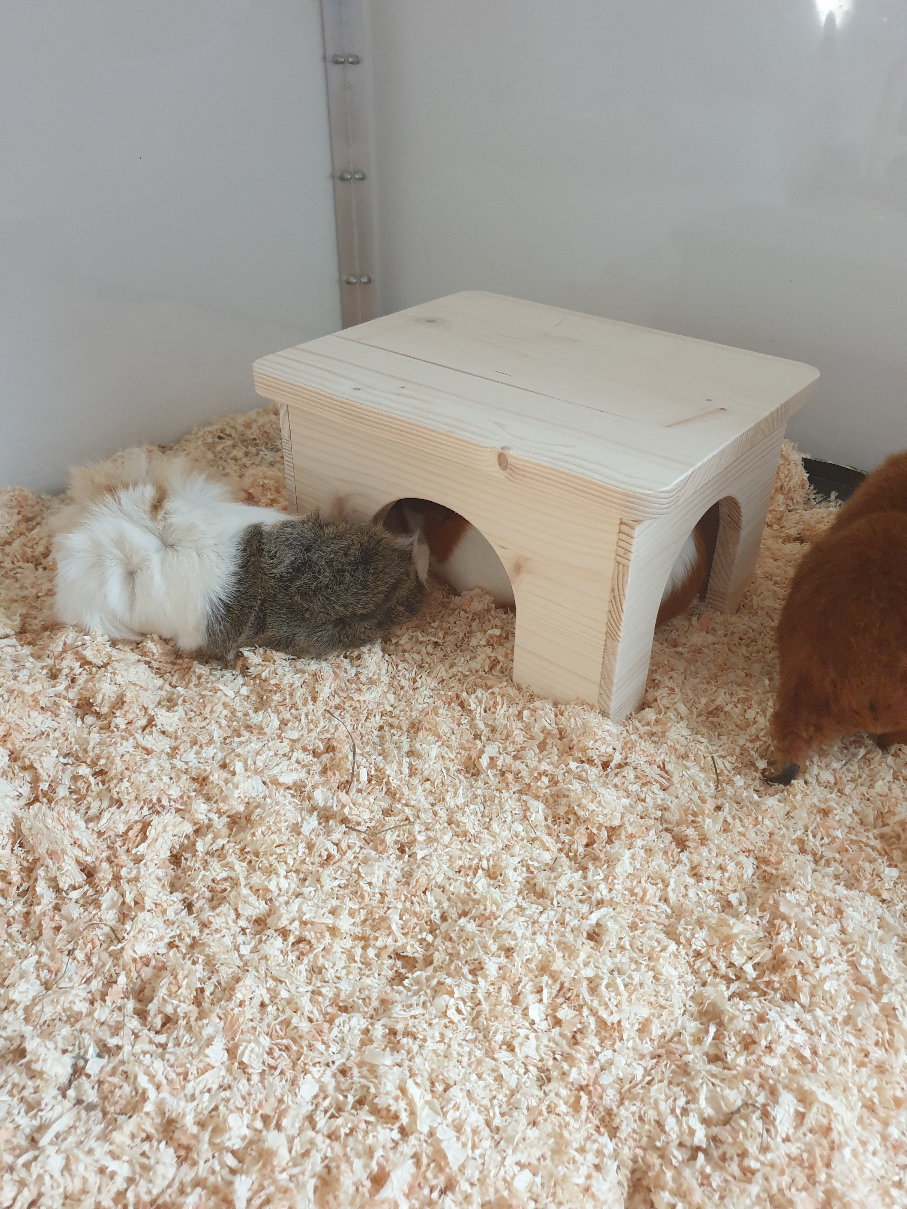 Sehr gut verarbeitetes Häuschen, gute Größe und schöne Optik. Kommt gut bei den Schweinchen an, eines von beiden liegt immer drin!
