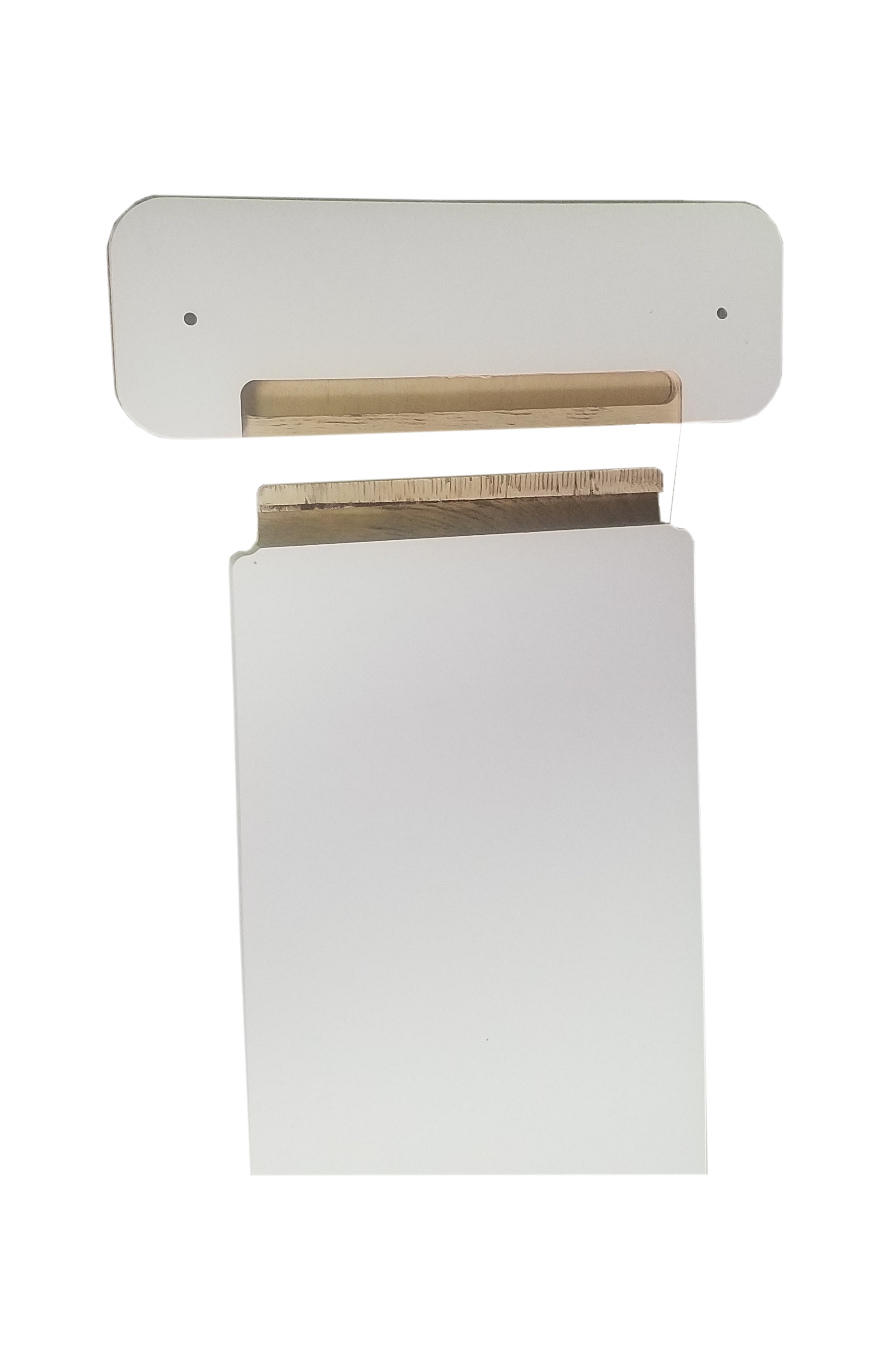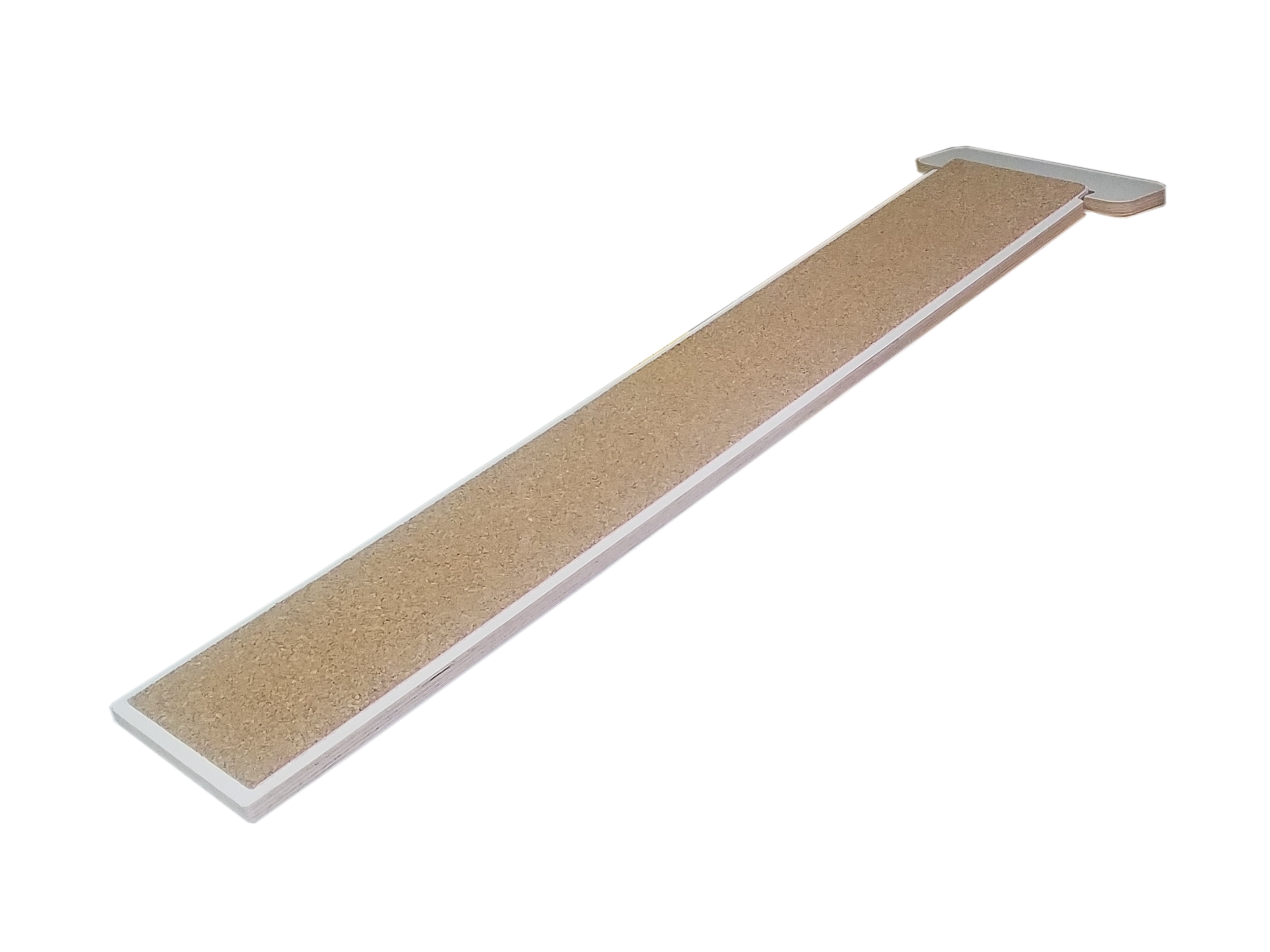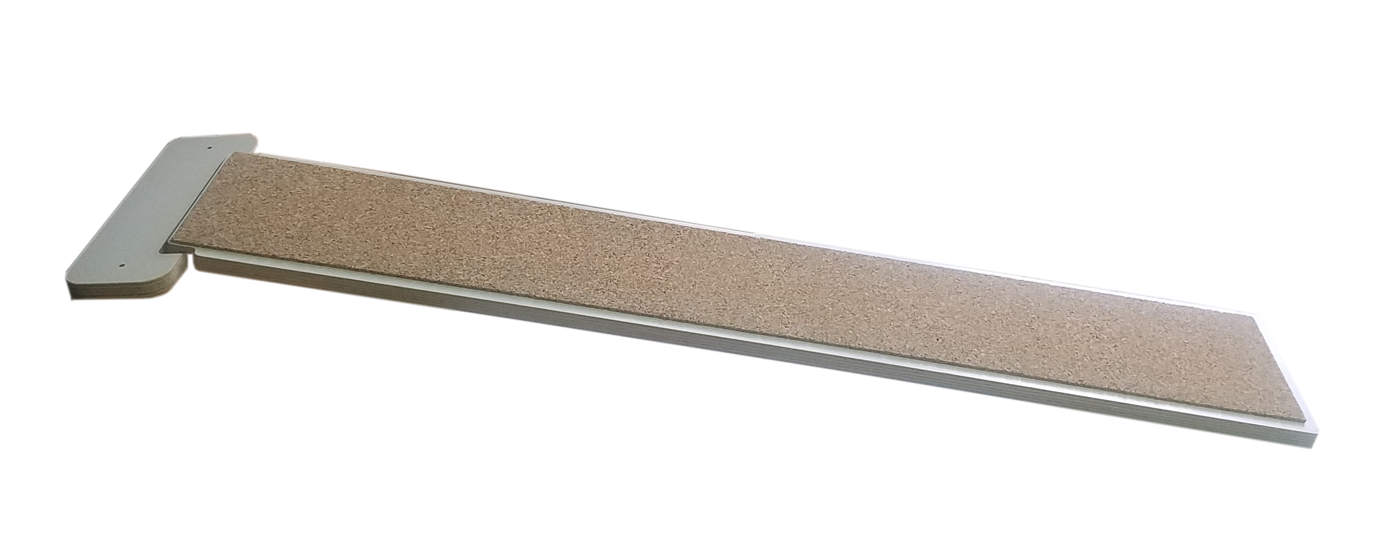 Die Halterung und die Rampen bestehen aus 15 mm wasserfest verleimtem Furniersperrholz mit weißer Melaminharzbeschichtung, die Rampen sind auf der Lauffläche mit Kork beschichtet. Melaminharz wird zum Beispiel für die Beschichtung von Küchenarbeitsplatten oder zur Herstellung von bruchfestem Kindergeschirr verwendet.