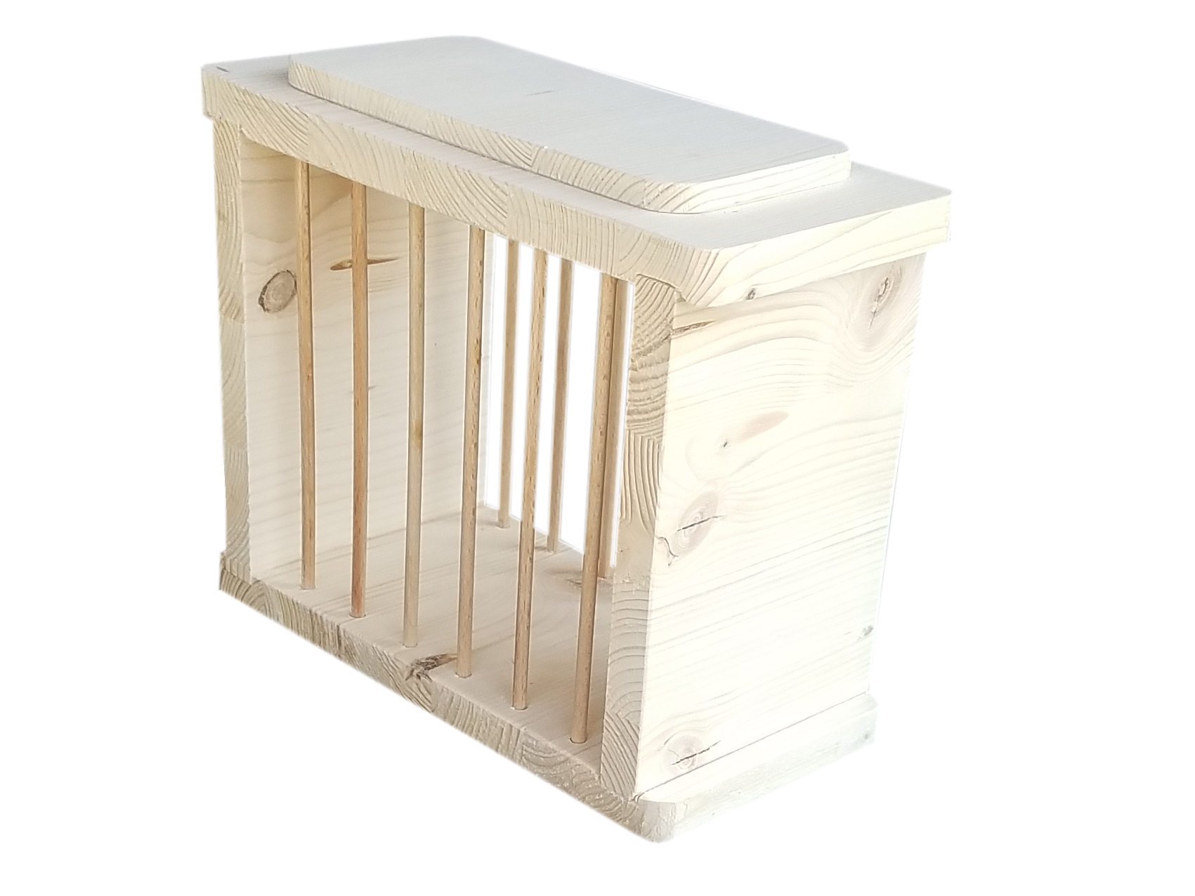 Frei stehende, rechteckige, zweiseitig zugängliche Heuraufe mit Trinkflaschenhalterung. Platz für mehrere Tiere gleichzeitig. Raufe mit großem Fassungsvermögen, einfach von oben zu befüllen. Flaschenhalterung passend für Trinkflaschen bis zu einem Durchmesser von ca. 65mm. Einfacher Flaschenwechsel durch Entnahme von oben, sicherer Halt. Trinkflasche nicht im Lieferumfang enthalten. Aus naturbelassenem Fichtenleimholz, mit abgerundeten Ecken. Hergestellt in Deutschland. Maße ca. 330 x 120 mm. Höhe ca. 210 mm. Gewicht ca. 0,9 kg. Durchmesser Trinkflaschenhalterung ca. 70 mm Lieferung ohne Meerschweinchen und Deko.