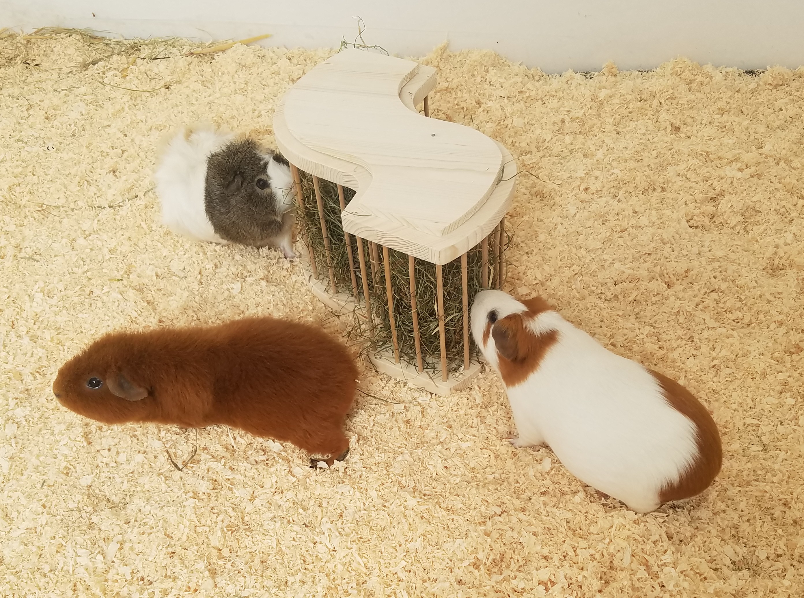Eine sehr schöne, große Heuraufe, die bis zu 10 Meerschweinchen genügend Platz zum futtern bietet! Für meine vier reicht sie super und bietet den Tieren die Möglichkeit, das Heu gut zu selektieren. Sie steht sehr stabil, sodass die Meeris auch daran männchen machen und sich abstützen können, ohne dass die Raufe dabei kippt. Schöne Verarbeitung, gute Holzqualität. Ich bin sehr zufrieden und kann sie definitiv weiterempfehlen :-)