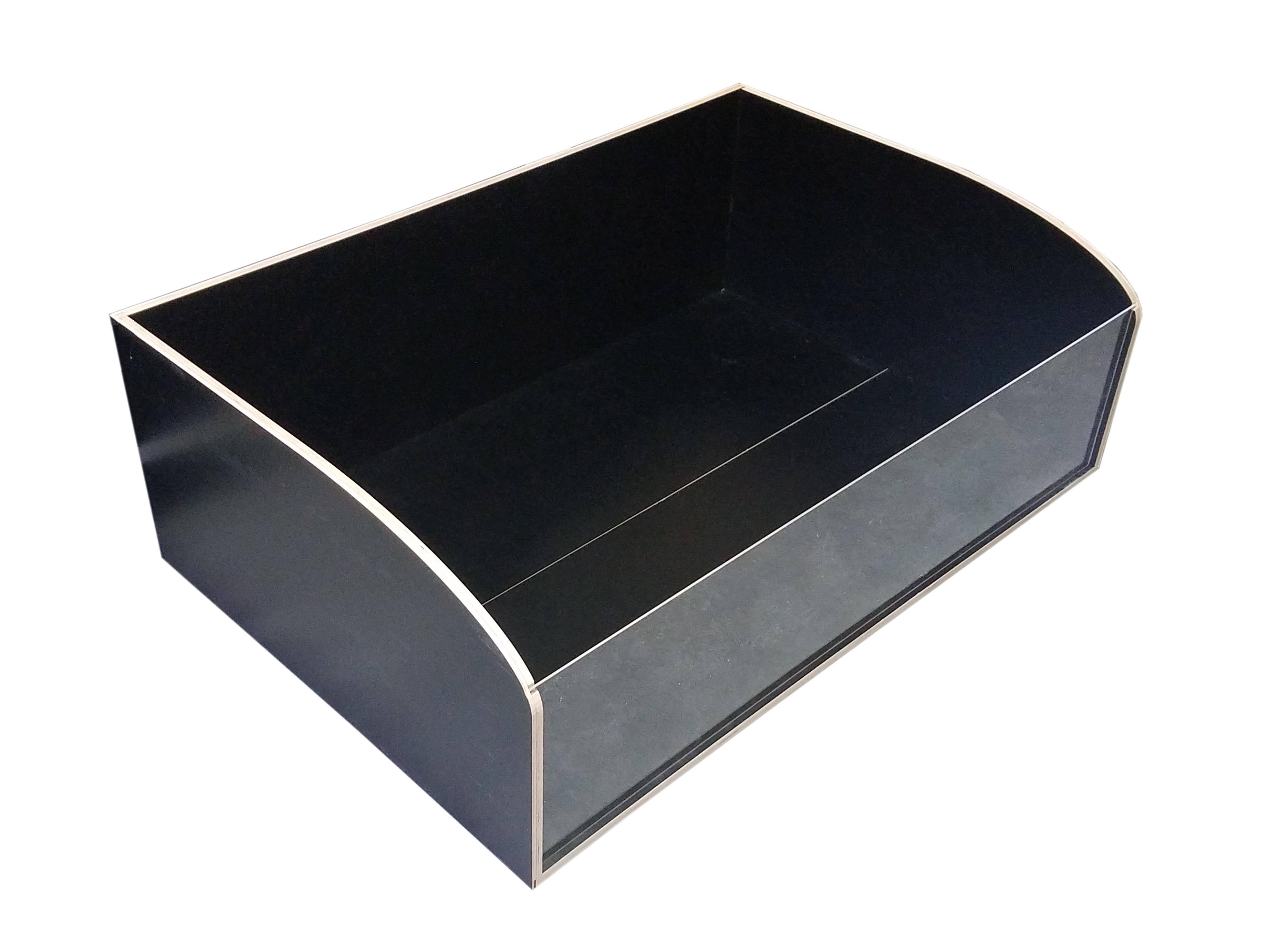 Aus 15 mm wasserfest verleimtem Furniersperrholz mit weißer Melaminharzbeschichtung* oder mit schwarzer Phenolharzbeschichtung und 3 mm Acrylglas. Im Lieferumfang enthalten sind die benötigten Schrauben, sowie 6 Gummifüßchen. Gefertigt in Deutschland.