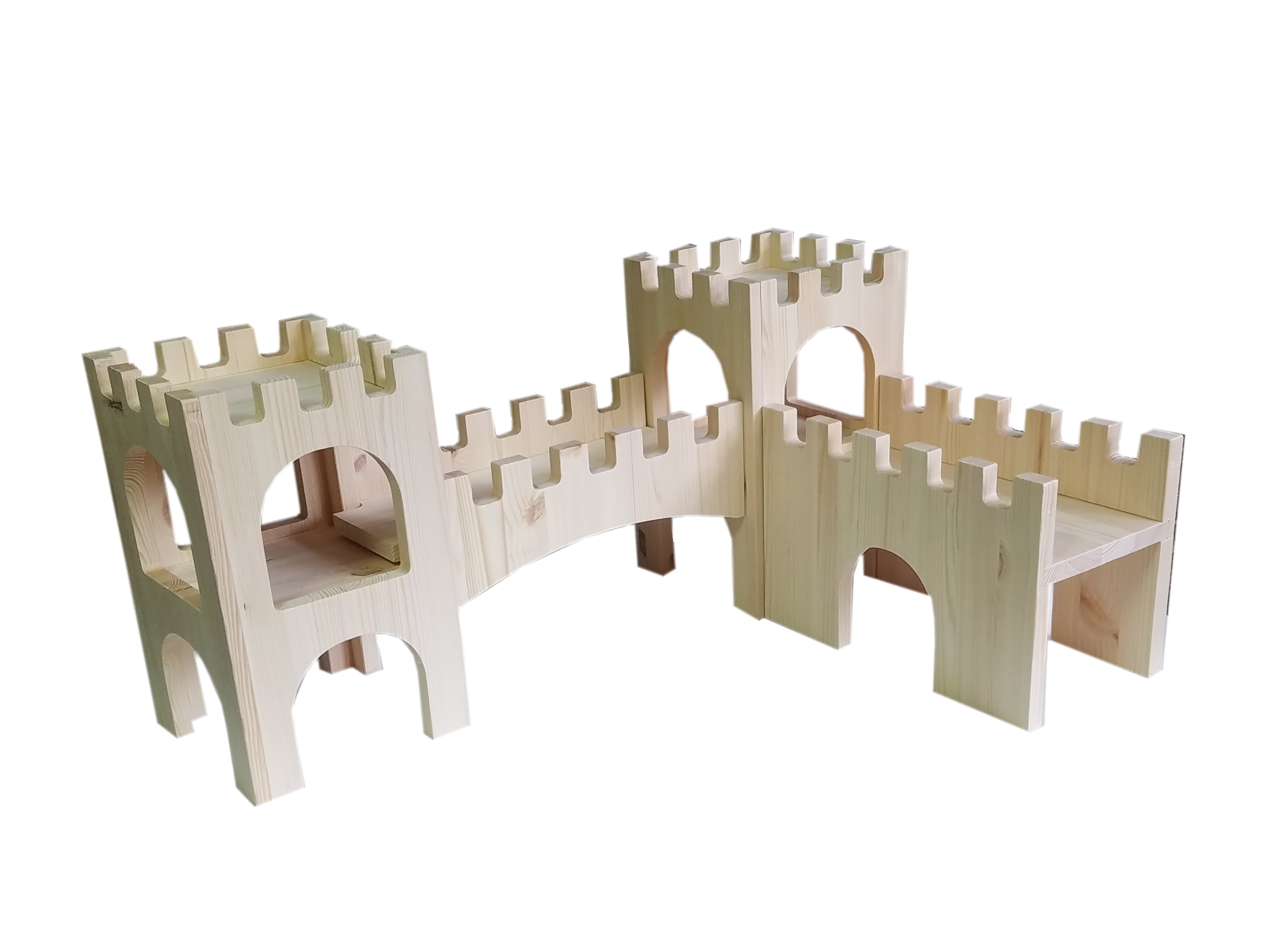 Wehrgang für die Wutzenburg zum Kombinieren und Ergänzen nach Lust und Laune. Der Wehrgang hat an beiden Längsseiten einen Eingang und ist an beiden Schmalseiten offen, so dass er mit dem Wutzenburg Burgturm (Art.Nr.80029), weiteren Wehrgangteilen (Art.Nr. 80087, 80097, 80107), sowie der Rampe (Art.Nr. 80033) oder dem Tunnel (Art.Nr. 80012) kombiniert werden kann. Zum Schutz des Wehrgangs gegen Urin gibt es passende Pipipads in verschiedenen Farben (Art.Nr. 80052).  Hergestellt aus Nadelleimholz und in Deutschland. Lieferumfang: ein Wehrgang-Element ohne Meerschweinchen und Deko Maße: ca. 350x180x230mm, Durchgänge ca. 125x125mm, die Lauffläche befindet sich in ca.155mm Höhe und passt so genau zur oberen Ebene des Burgturmes.