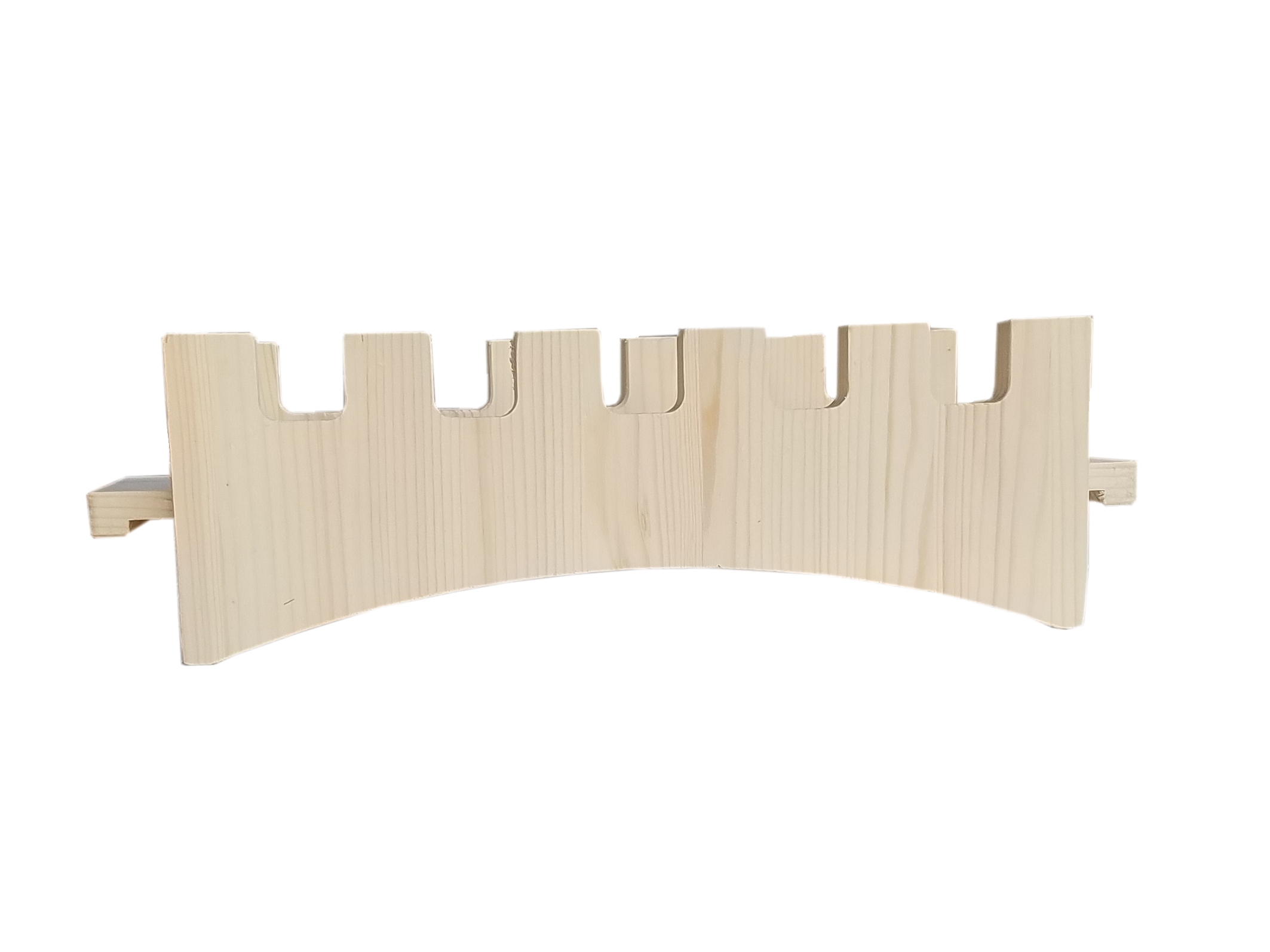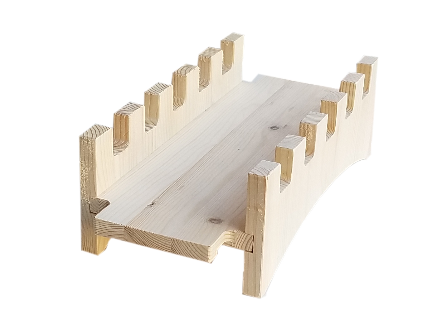 Brücke zum Einhängen für die Wutzenburg. Die Brücke passt mit ihren Zinnen ideal zur Wutzenburg und ist auf die Maße der Wehrgänge (Art. Nr. 80030, 80087,80097,80107) abgestimmt, so dass alle Teile nach Belieben kombiniert werden können. Sie kann in die Türme (Art.Nr.80029) eingehängt werden und hat so sicheren Halt, auch wenn schnelle Schweinchen darüber flitzen. Hergestellt aus Nadelleimholz und in Deutschland.