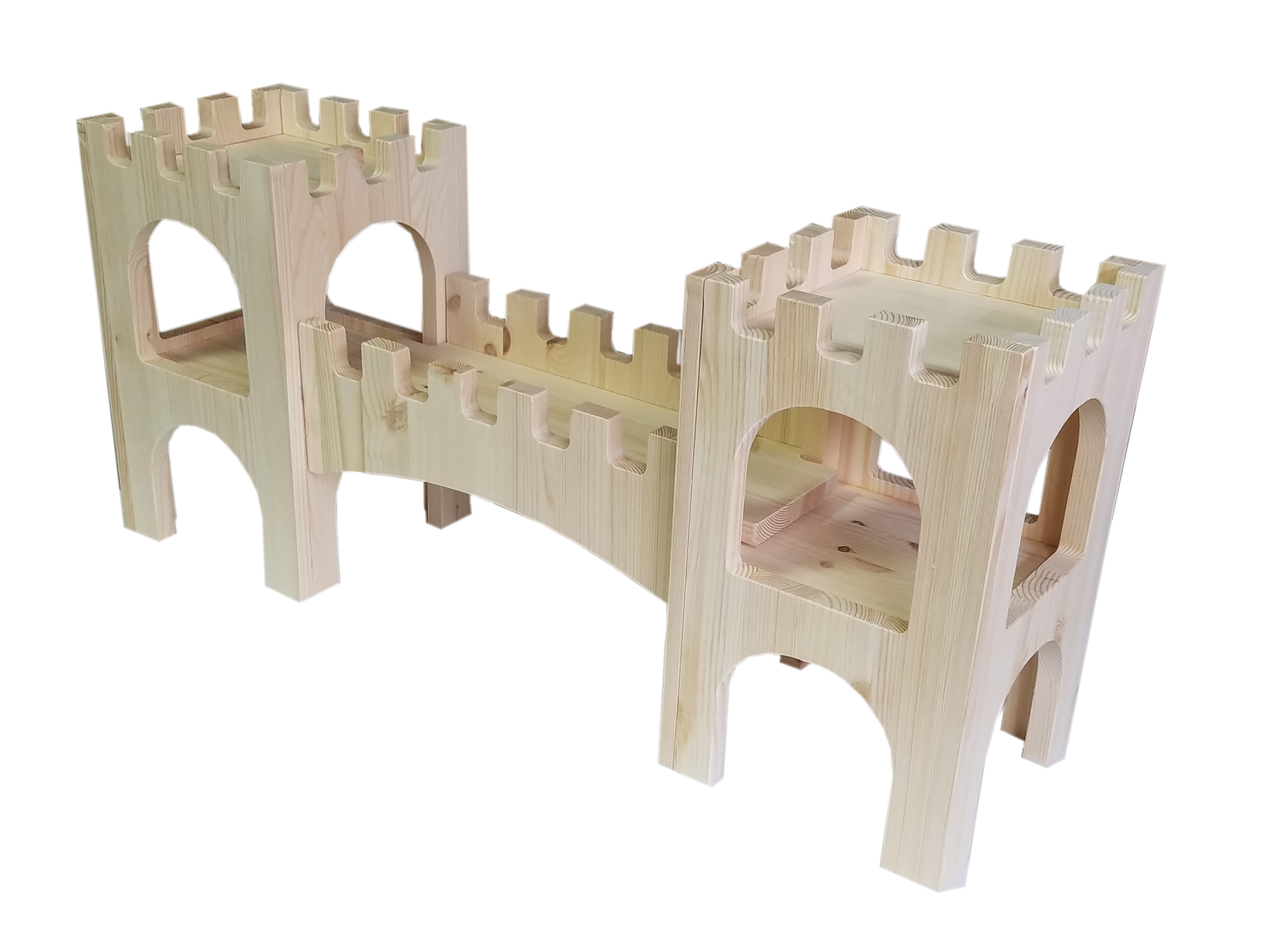 Wehrgang mit Fenstern für die Wutzenburg zum Kombinieren und Ergänzen nach Belieben. Der Wehrgang hat an einer Längsseite zwei Fenster, ist an der zweiten Längsseite komplett geschlossen und an beiden Schmalseiten offen, so dass er mit dem Wutzenburg Burgturm (Art.Nr.80029), weiteren Wehrgangteilen (Art.Nr.80030, 80097, 80107), der Rampe (Art.Nr. 80033) oder auch dem Tunnel (Art.Nr.80012) zu einem langen Gang kombiniert werden kann. Hergestellt aus Nadelleimholz, gefertigt in Deutschland. Lieferumfang: ein Wehrgang-Element ohne Meerschweinchen und Deko Maße: ca. 350x180x230mm, die Lauffläche befindet sich in ca.155mm Höhe und passt so genau zur oberen Ebene des Burgturmes.