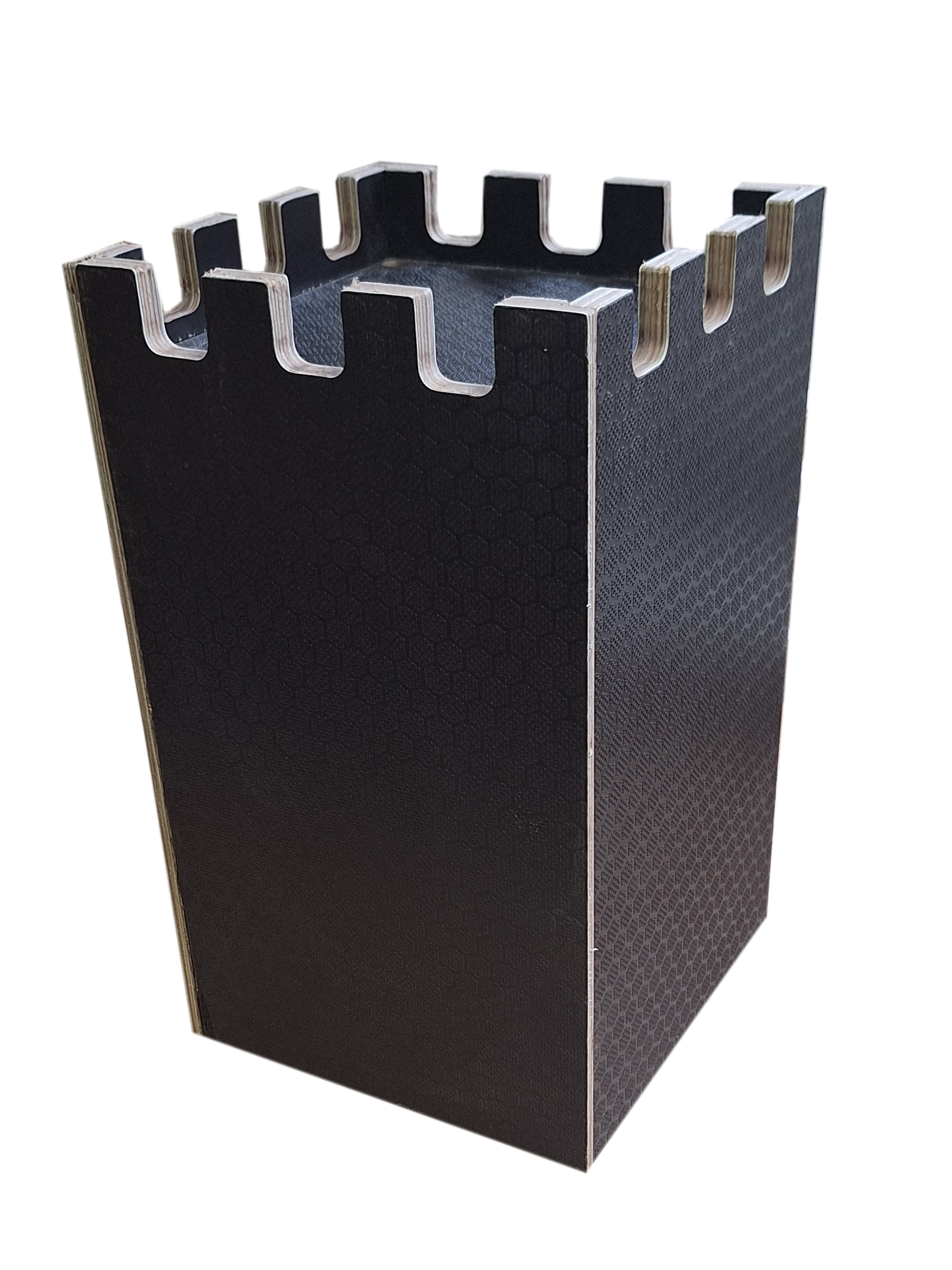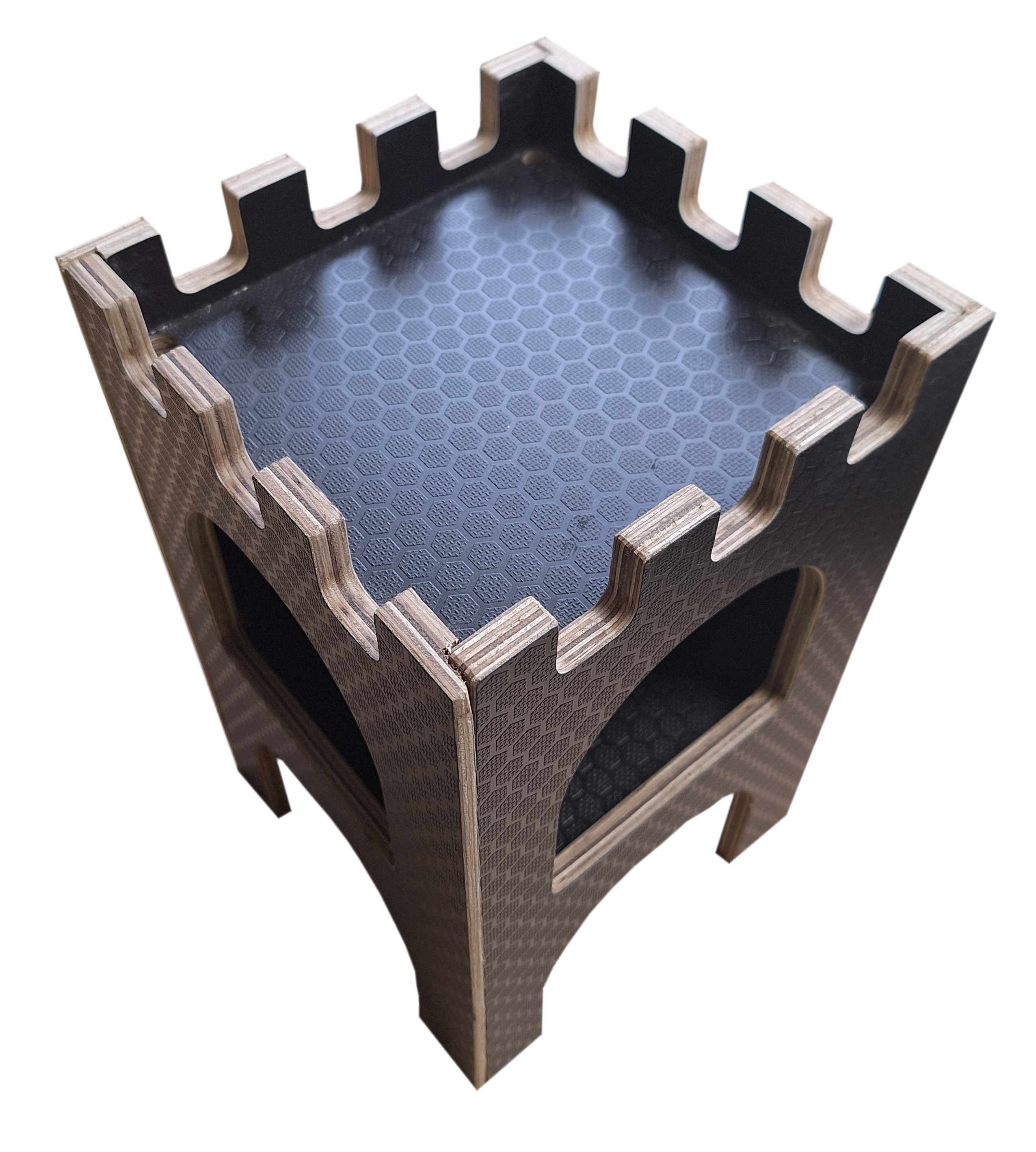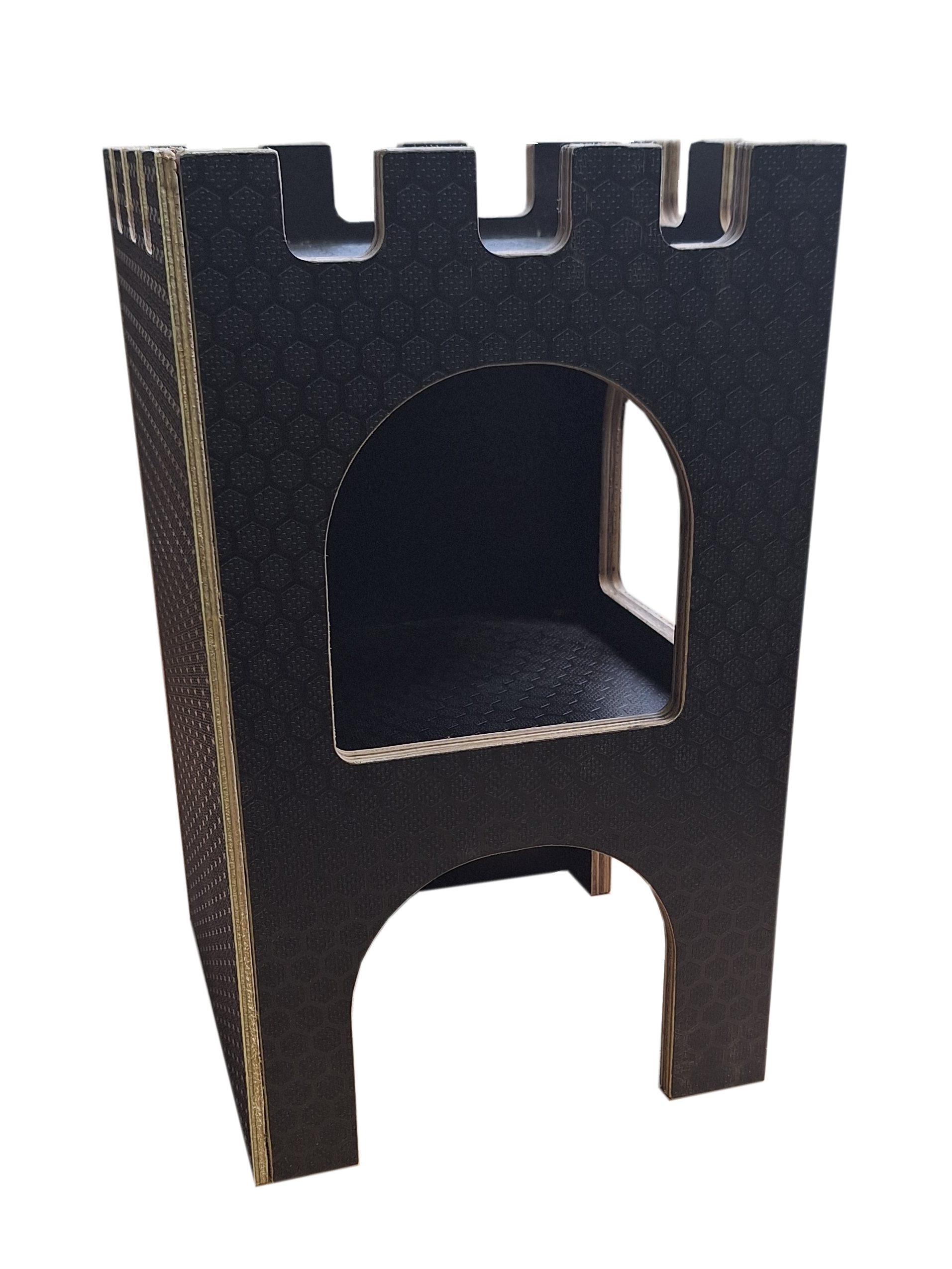 Der Turm ist wasserfest verleimt und hat in allen vier Ecken beider Ebenen Regenwasserabflüsse, damit kein Wasser stehen bleibt. Hergestellt in Deutschland aus wasserfest verleimtem Furniersperrholz.  Oberflächenstruktur nach Vorrat.
