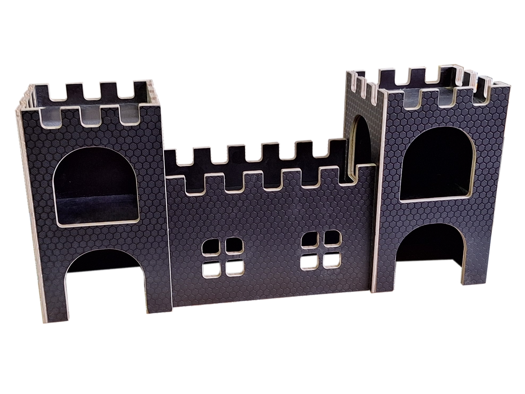 Wehrgang mit Fenstern beidseitig für die Wutzenburg. Der Wehrgang hat an beiden Längsseiten Fenster, die Schmalseiten sind offen, so dass er mit dem Wutzenburg Burgturm wetterbeständig (Art.Nr.80103), dem Burgturm wetterbeständig windgeschützt (Art.Nr.80130), dem Wehrgang mit Fenstern wetterbeständig (Art.Nr. 80131), dem Wehrgang wetterbeständig (Art.Nr. 80104) und der Rampe wetterbeständig (Art.Nr.80105) beliebig kombiniert werden kann.  Hergestellt aus wasserfest verleimtem Furniersperrholz und in Deutschland. Oberflächenstruktur nach Vorrat. Lieferumfang: ein Wehrgang-Element ohne Meerschweinchen und Deko Maße: ca. 350x180x230mm, die Lauffläche befindet sich in ca.155mm Höhe und passt so genau zur oberen Ebene des Burgturmes.